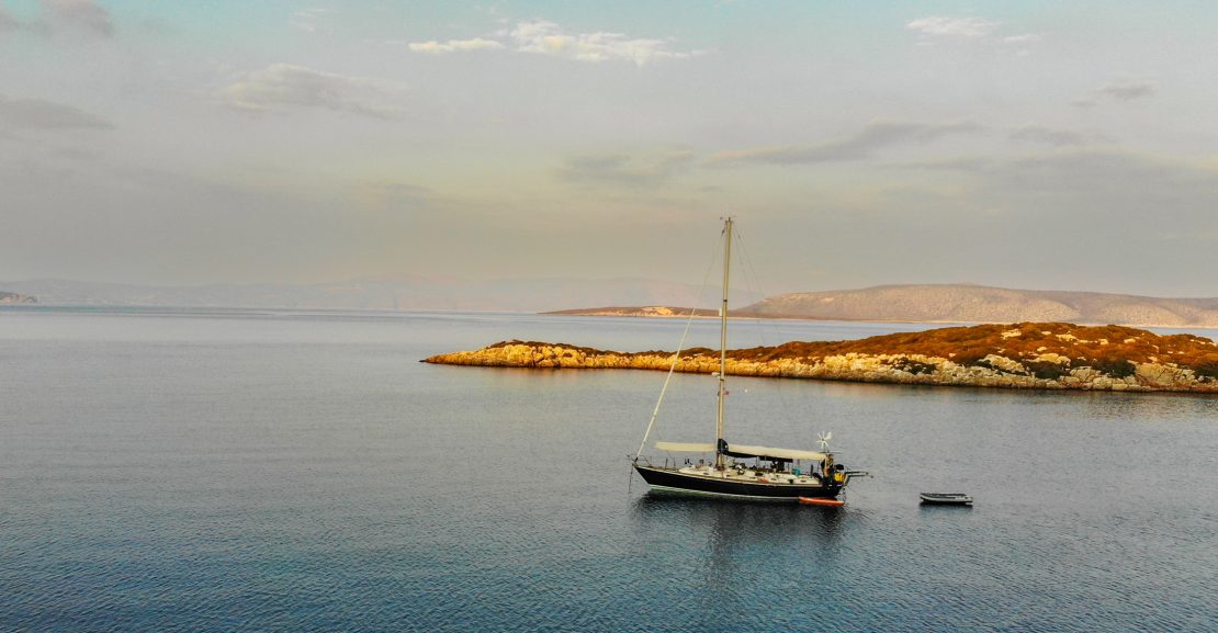 Sloop rigged with Selden double spreader, silver anodised keel stepped mast.