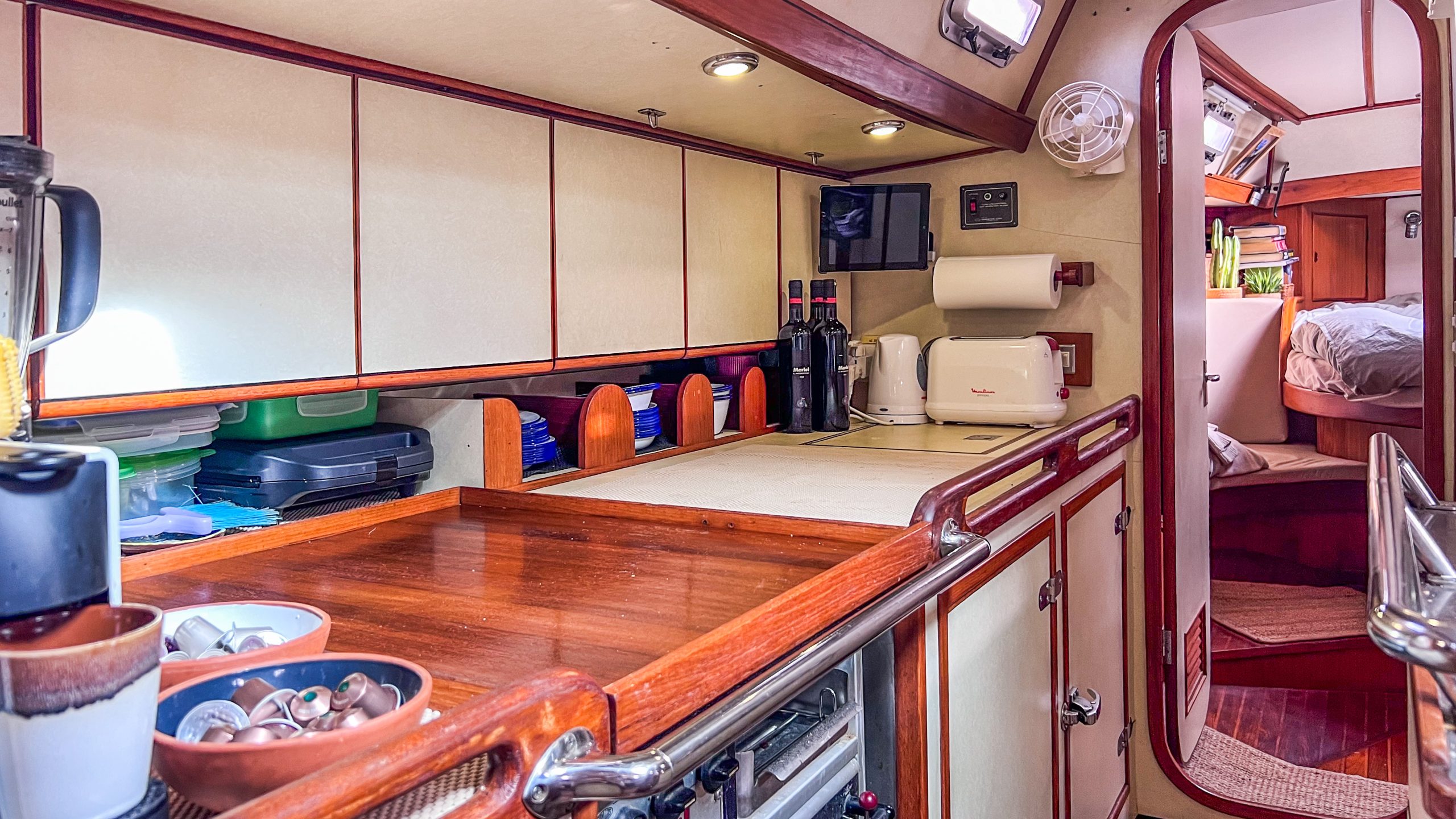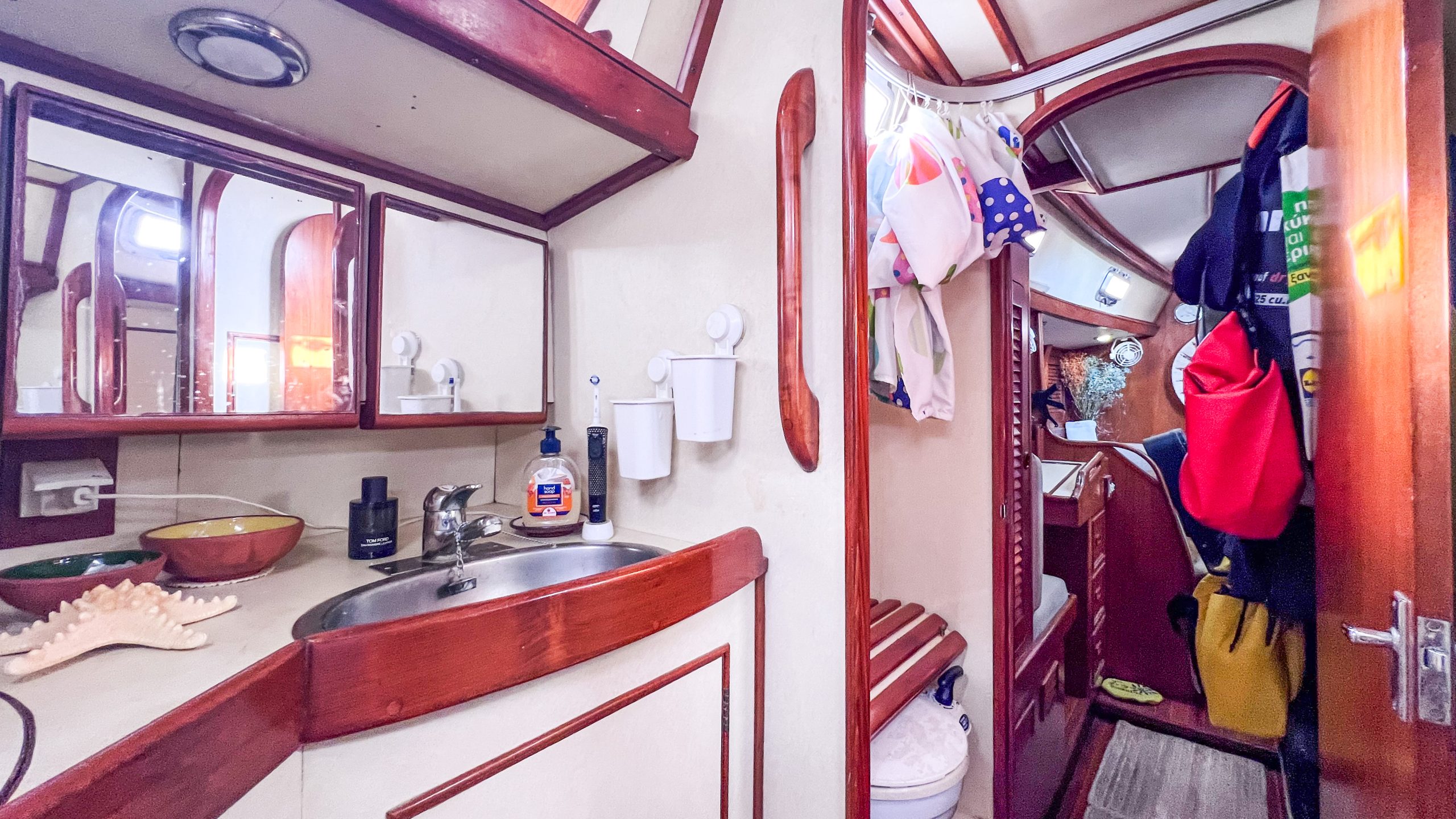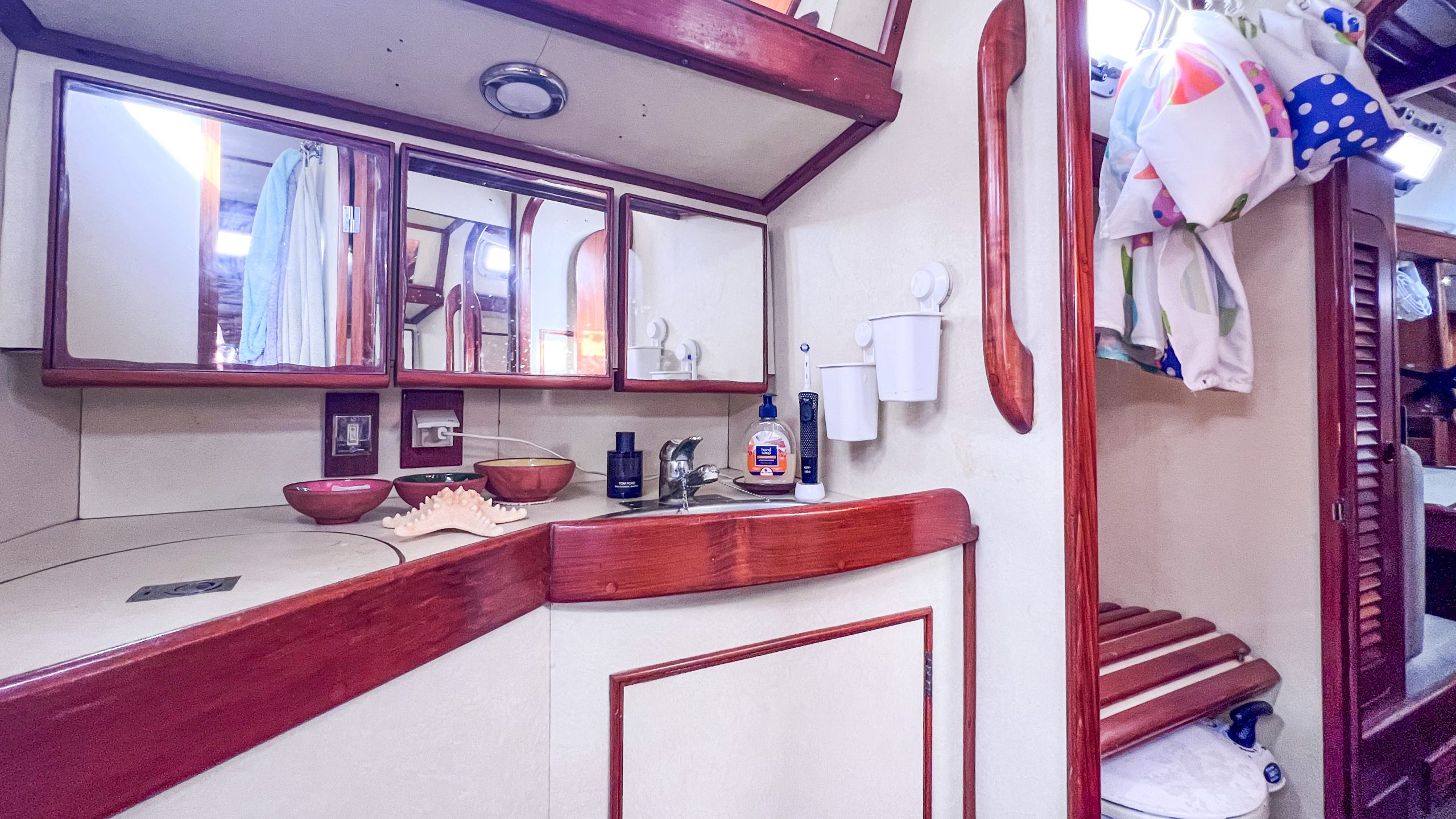 4 berths in two cabins, each with their own en suite sink, head & shower.