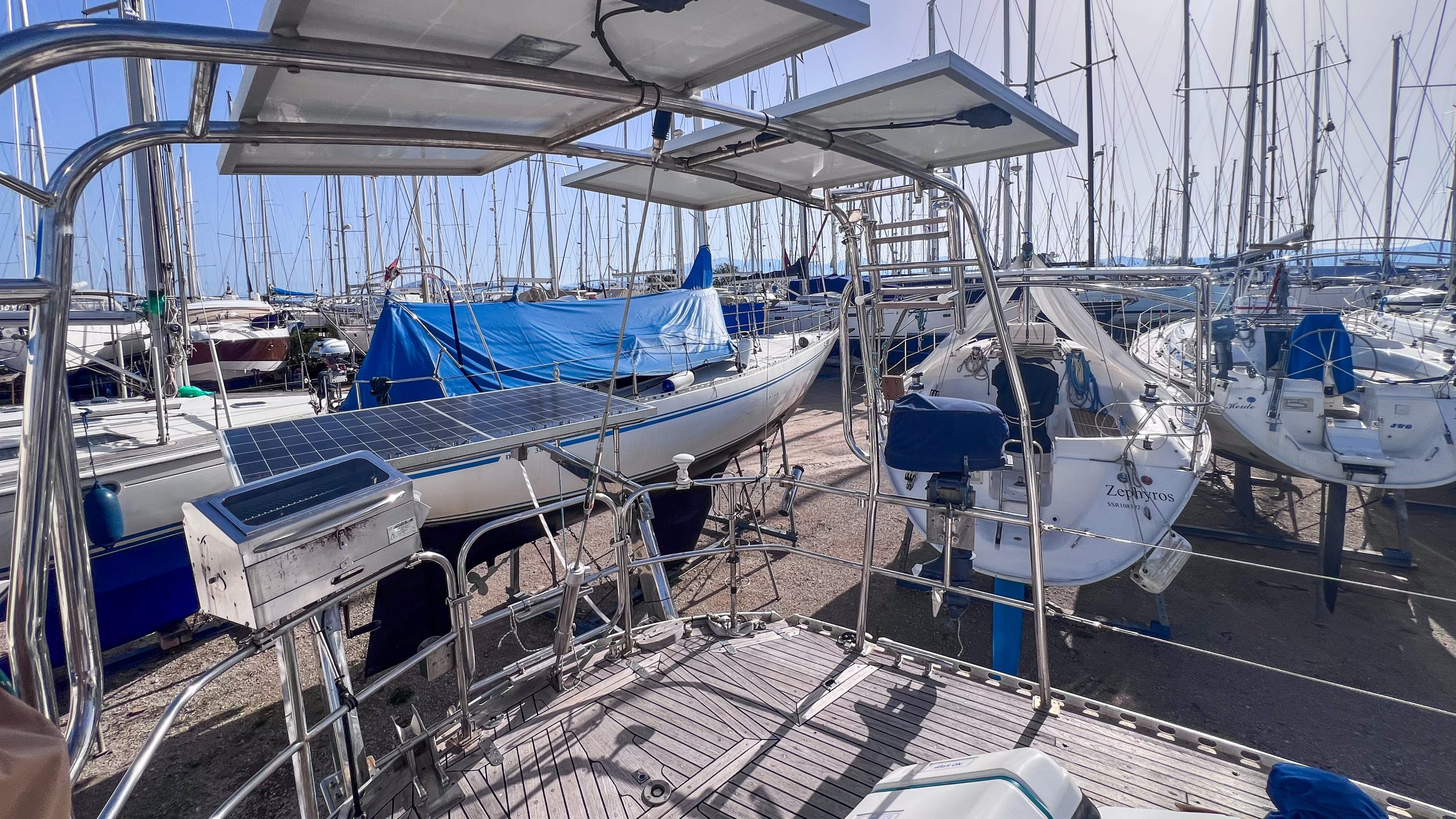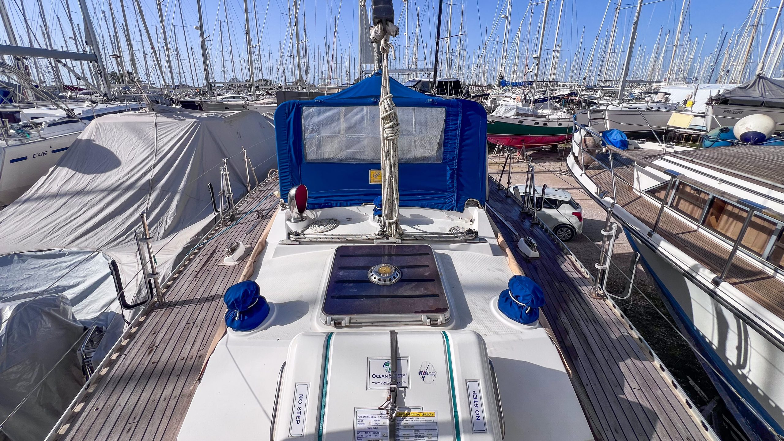 Full set of fenders and warps. Large sprayhood, sun awning, cockpit cover for storage, cockpit tent cover.