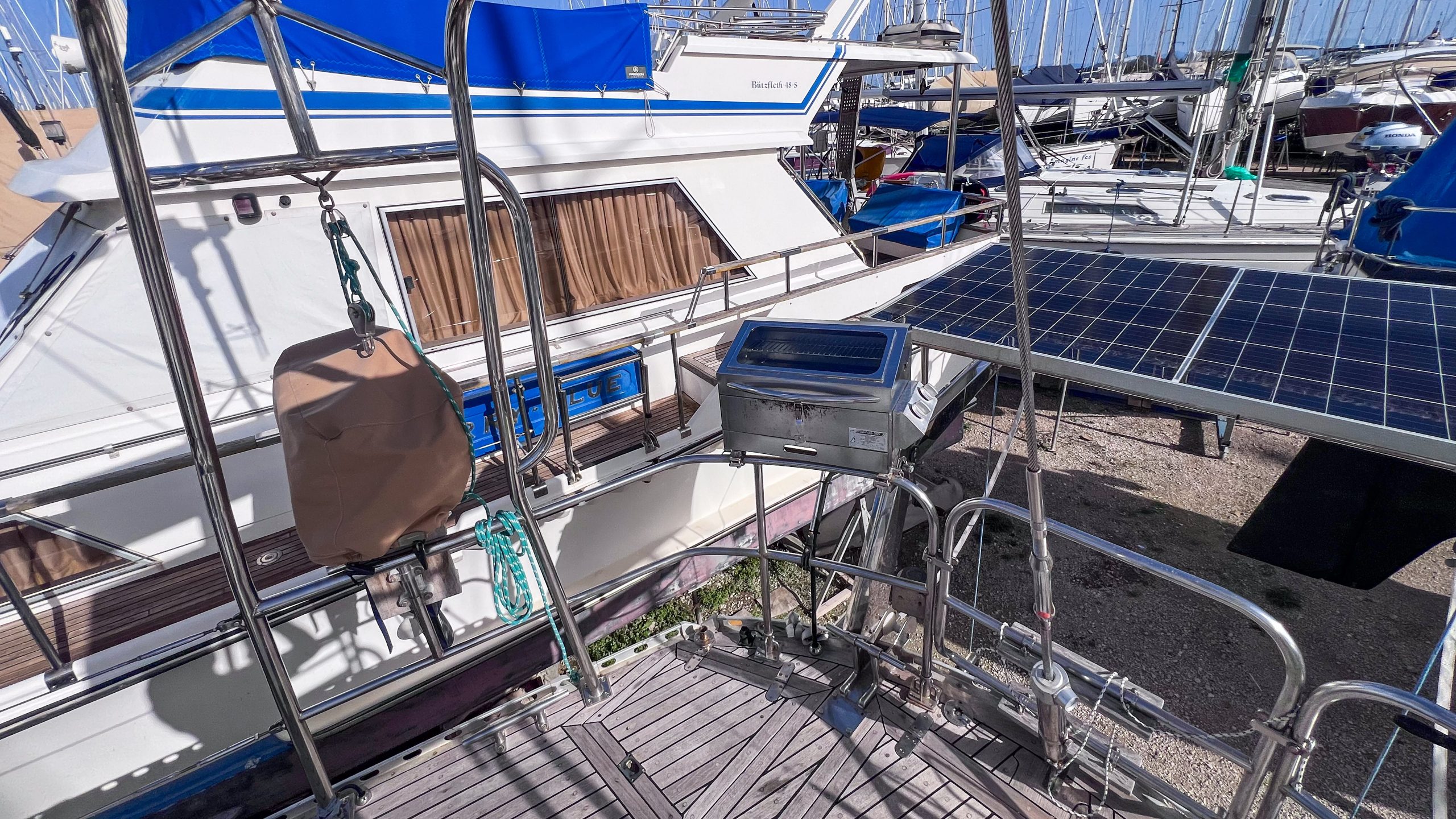Deck flood lights. Deck shower. Opening gates to port and starboard. Bathing ladder on transom.